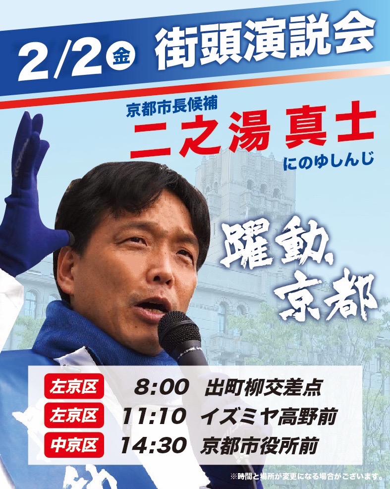 2/2(金)予定【街頭演説会】【個人演説会】