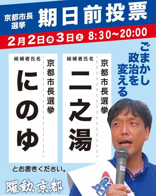 #京都市長選挙 #京都市長選 #二之湯真士 #二之湯を止めるな #北陸新幹線 #奇跡の追い上げ